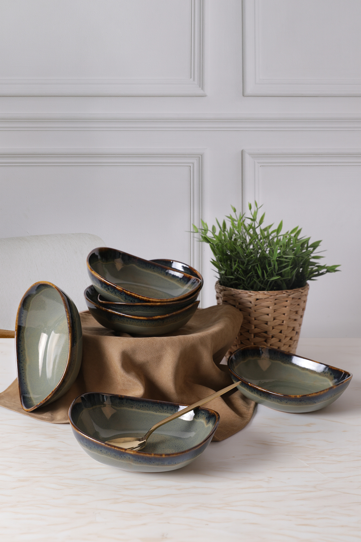 Sade bir aile yemeği veya kalabalık bir partide sizlere eşlik edecek keramika Reaktif Yeşil Isabella Kase servislerinize çok şık bir hava katacaktır. Gözalıcı sunumlar yapmanızın püf noktası olacak bu ürünler, masanıza havalı bir görünüm kazandıracaktır.