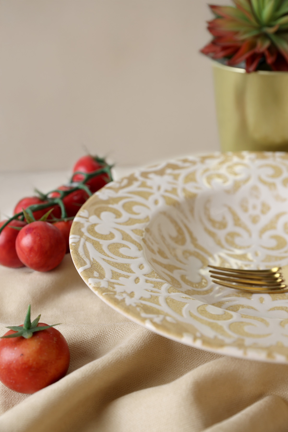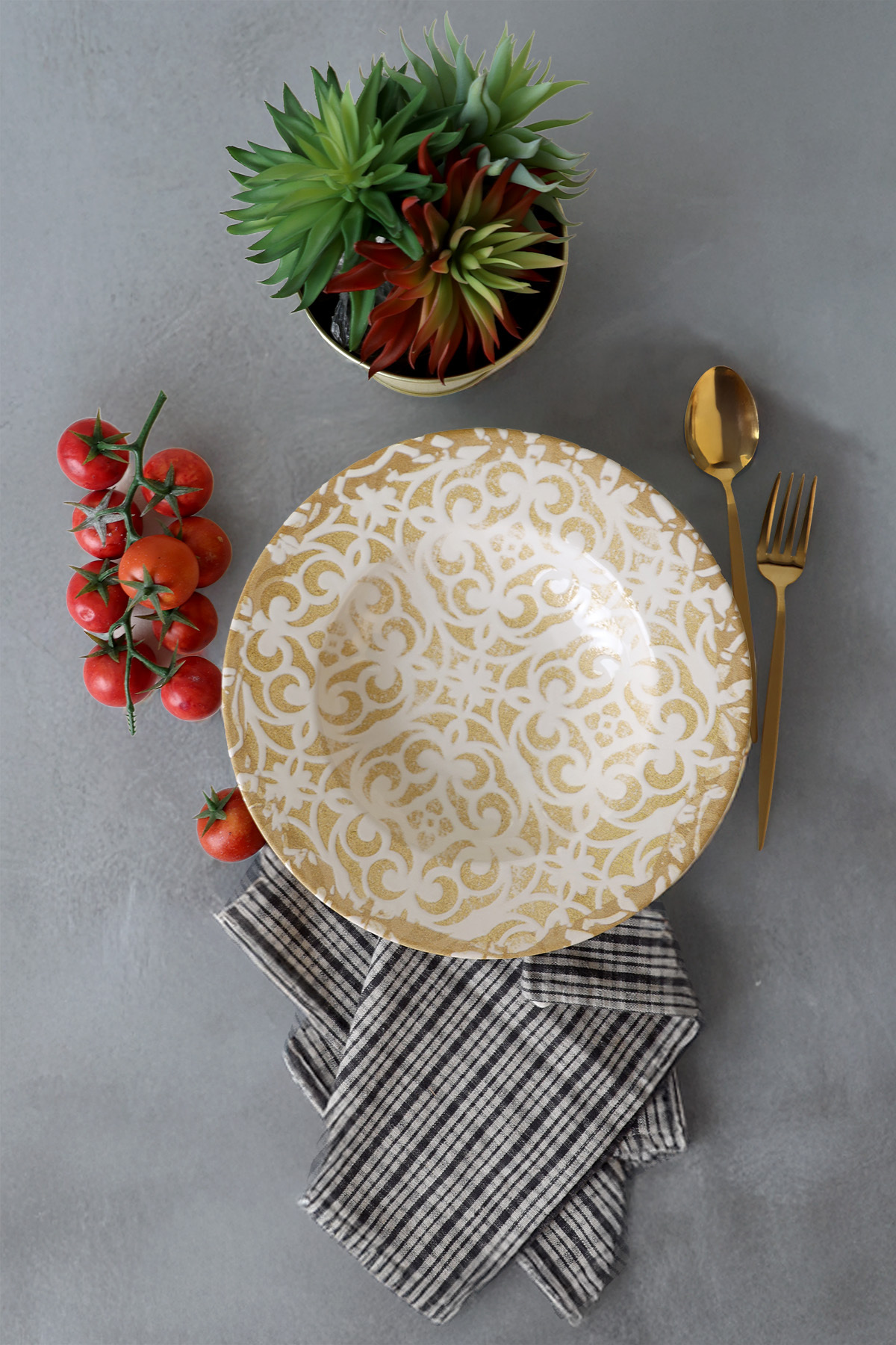 Hem gelenekselliği hem de modernliği sembolize eden keramika 1 adet Vintage Gold Ege Makarna tabağı, makarnanızı farklı bir boyuta taşıyacaktır. Makarna hem yapımının kolay olması hem de çok tercih edilmesi sebebiyle hemen hemen her mutfakta bu tabakların olması gerekir. Misafirler bu sunumda bir makarnayı farklı bularak sunumunuzu beğeneceğinden dolayı onlar için de güzel bir hediye olacaktır.